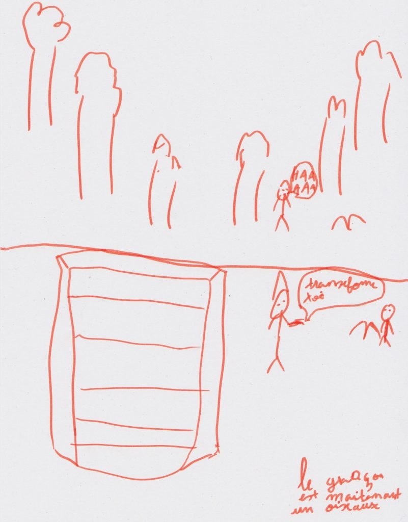 ex: La sorcière dit transformes toi.Et l’enfant se transforme en oiseaux.